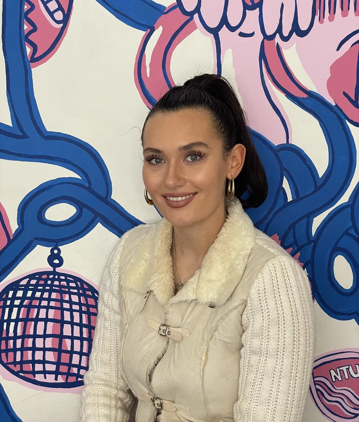 Hi I’m Millie. I’m an illustrator and muralist from Birmingham. My work is often inspired by disco music which translates into my use of bold colours and playful long-limbed characters. Frequently my images represent community and togetherness, but most importantly I like them to be fun!