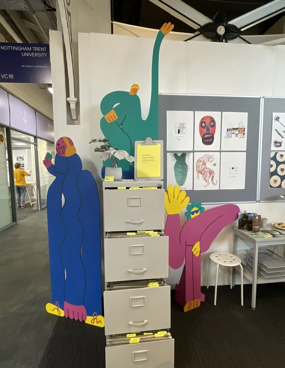 We have partnered with Beavertown Brewery to commission Millie to redesign our bar for The London Illustration Fair 2023 with a mural and a number of lifesize, 3D characters to join visitors in the Bar. We can’t wait to have a drink with them!